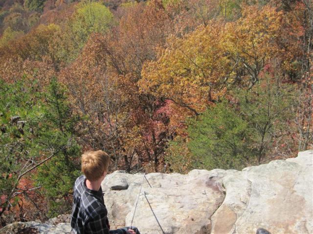 Our November Campout was Rappelling at Stone Door. We camped at the Stone Door Campsites, campsite #1. Ethan S was our camp cook with Saylor W assisting. Ethan brought us seasoned chicken with potatoes, onion, and celery cooked in two large dutch ovens for supper. It was awesome. For breakfast Ethan made bacon and scrambled eggs. It was probably the best bacon I have ever had on a campout. Friday night, Steven climbed a tree in the campsite and rigged up a series of ropes from a limb about 20-25 foot off the ground that people played around on. Saturday we spent rappelling and rock climbing at the Stone Door. Hayden, Steven, and Cole rigged up 2 different set ups so people could rappel or climb. Phil showed up on Saturday as well. Phil rigged up yet a third rope on a smaller cliff so people could have their choice of activity level. Attending the campout was Ethan S, Saylor W, Clay H, Daniel K, Brandon P, Cole M, Harrison H, Steven L, Bryce C, Hayden P, Alexander H, Darin P, Adrian H, and Harold R.
